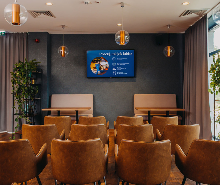 Istnieje również możliwość aranżacji sali restauracyjnej pod szkolenia.